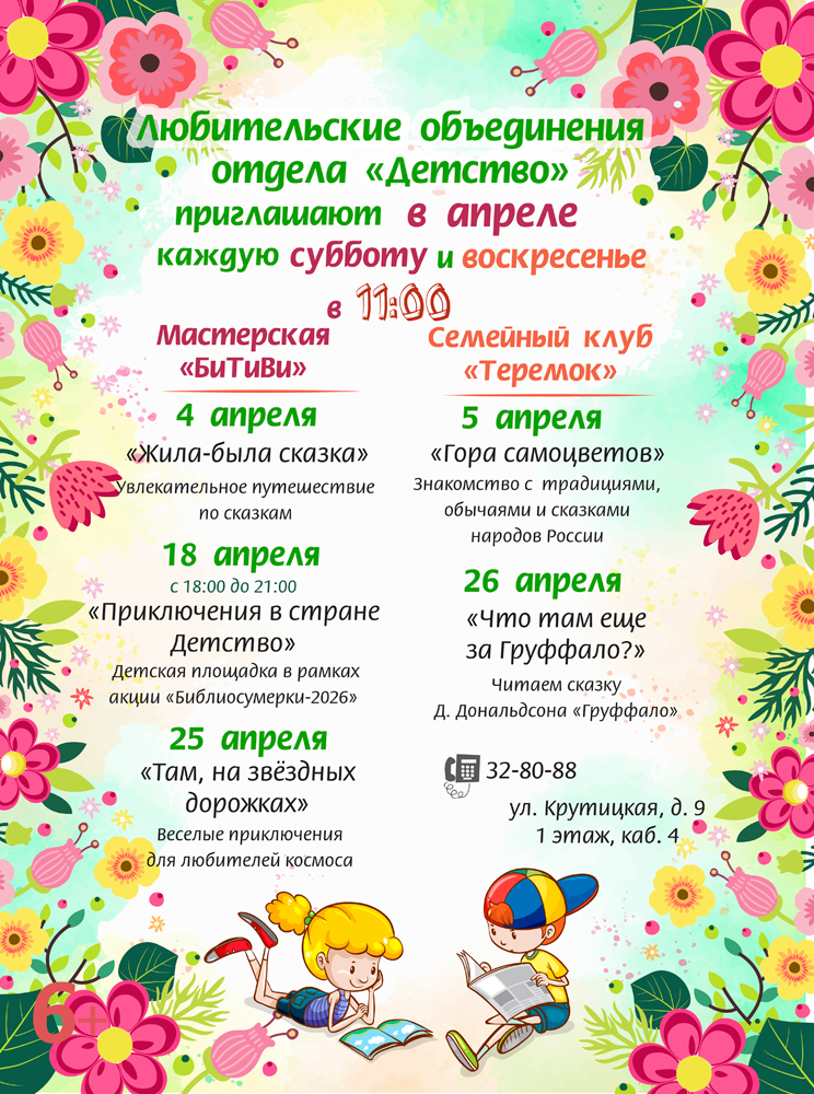 - 32-76-80 – Зал обслуживания читателей отдела «Отрочество. Юность»