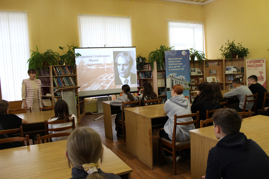 В филиале N 2 г. Кинешмы акция прошла в формате литературного батальона «Поэзия, рождённая в огне» и посвящалась 105-летию со дня рождения В.С. Жукова и 120-летию со дня рождения Н.А. Говоркова. Рассказ о жизни и творчестве земляков сопровождался показом тематических роликов. Одним из ярких моментов встречи стал поэтический батл, участники которого проникновенно читали стихи поэтов-фронтовиков. «Позывные простреленного сердца» – так назывался поэтический час об ивановском поэте В.С. Жукове, подготовленный сотрудниками библиотеки-филиалом N 2 Вичугской библиотечной системы.