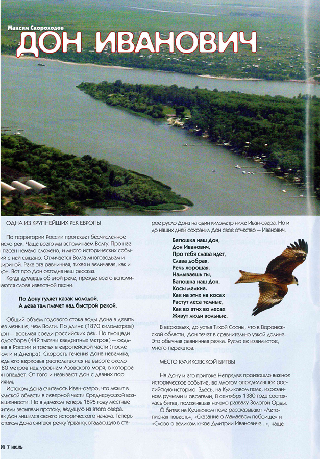 Информация о великой реке, сохранившей память о тех событиях и в честь которой князь получил своё прозвище – Донской, представлена в статье М. Скороходова «Дон Иванович».