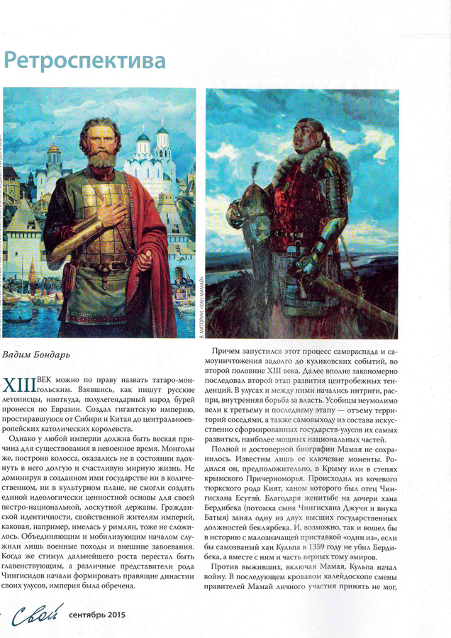 - Бондарь, В. Мамай не прошёл / В. Бондарь // Свой. – 2015. – N 9. – С. 4-7.