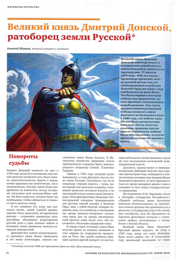 - Шишов, А. Великий князь Дмитрий Донской, ратоборец земли Русской / А. Шишов // Основы безопасности жизнедеятельности. – 2018. – N 7. – С. 58-64.
