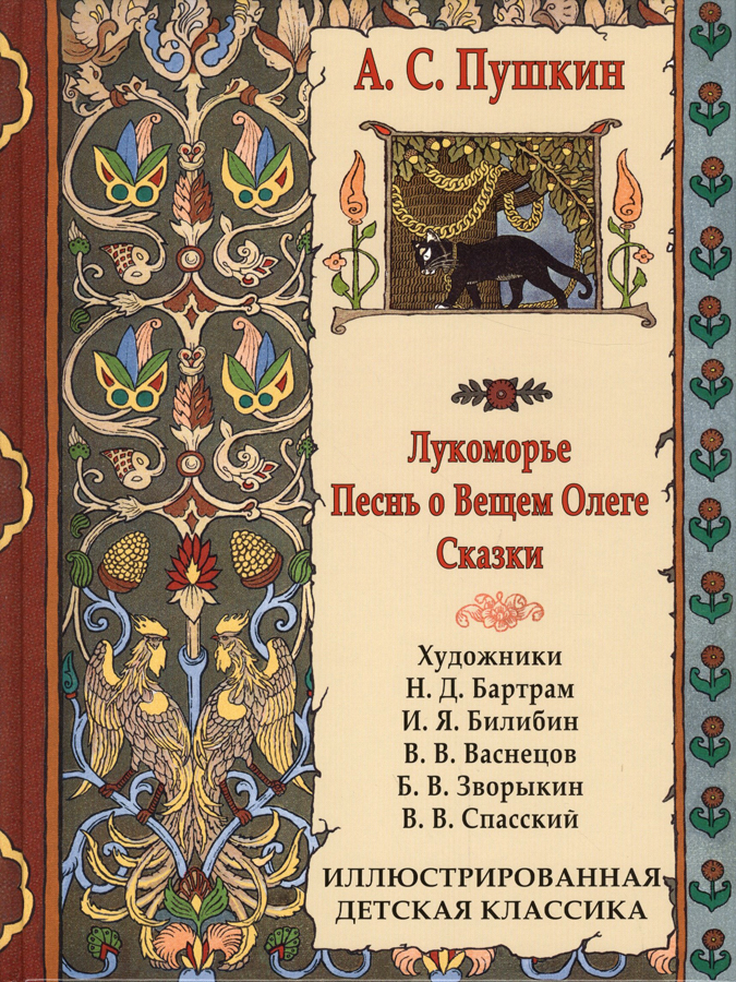 - Пушкин, А.С. Лукоморье. Песнь о Вещем Олеге. Сказки / Александр Сергеевич Пушкин ; рис. Н.Д. Бартрам, И.Я. Билибин, В.М. Васнецов, Б.В. Зворыкин, В.В. Спасский. – Санкт-Петербург : СЗКЭО, 2016. – 128 с. : ил. – (Иллюстрированная детская классика).