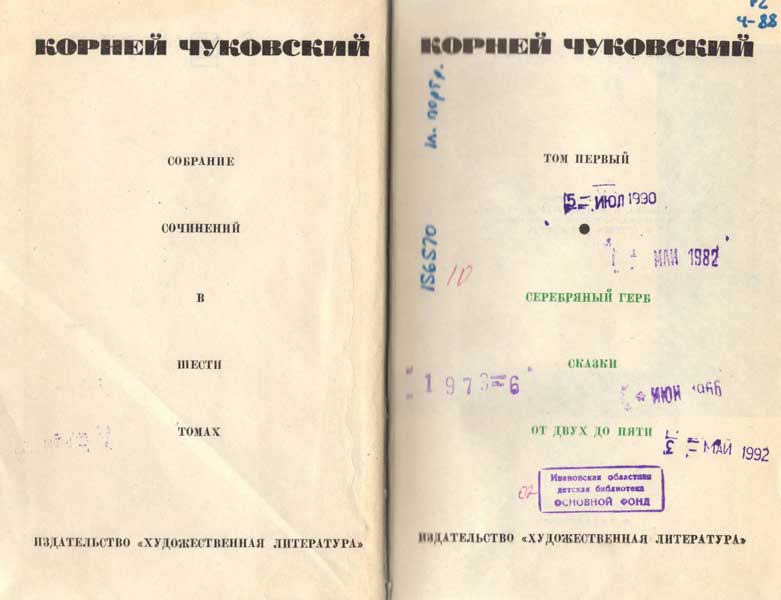 - Чуковский, К.И. Собрание сочинений : в 6 т. / Корней Чуковский. – М. : Худож. лит., 1965-1969.