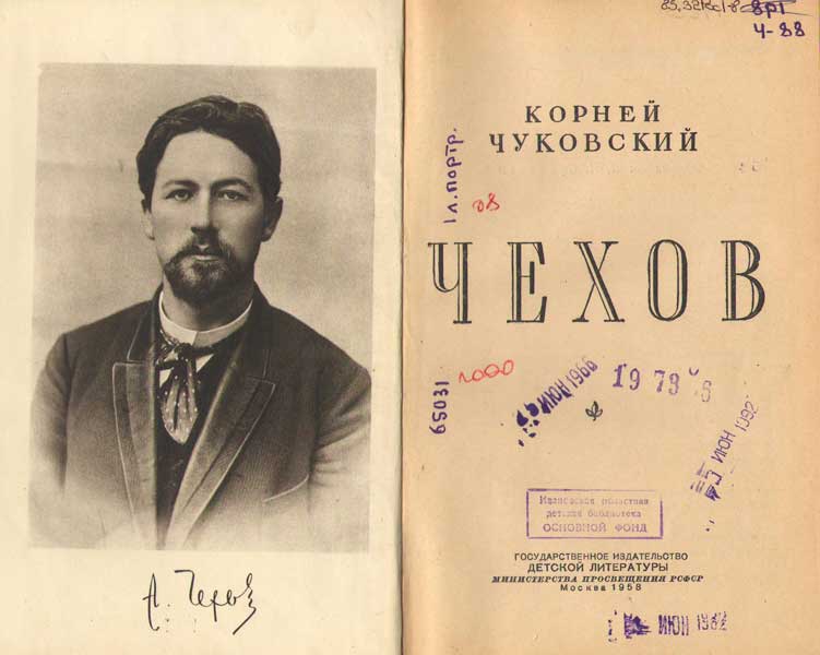 - Чуковский, К.И. Чехов / Корней Чуковский. – М. : Детгиз, 1958. – 95 с., 1 л. портр.
