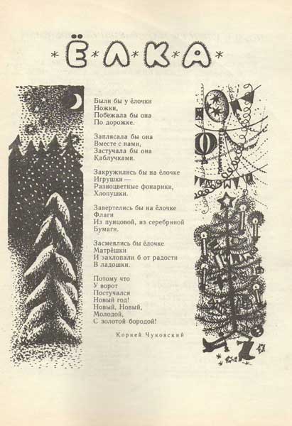 - Чуковский, К.И. Елка : [стихи] / Корней Чуковский ; рис. Б. Кыштымова // Круглый год. 1965 : [книга-календарь для детей]. – М., 1964. – С. 237.