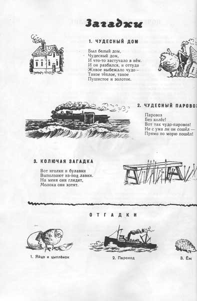 - Чуковский, К.И. Загадки / Корней Чуковский ; рис. В. Конашевича // Круглый год. 1962 : [книга-календарь для детей]. – М., 1961. – С. 82-83.