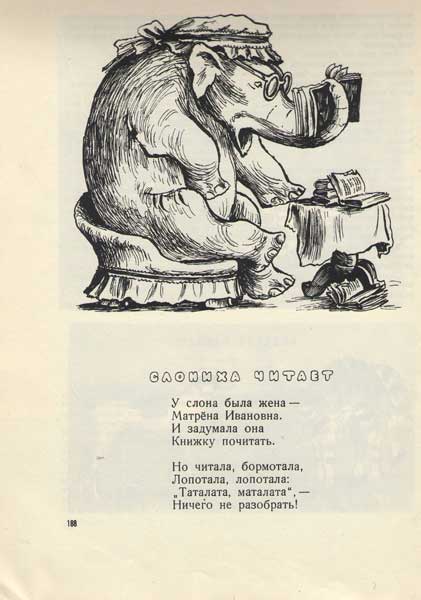 - Чуковский, К.И. Слониха читает ; Ежики смеются ; Поросенок : [стихи] / Корней Чуковский ; рис. В. Конашевича // Круглый год : [книга-календарь для детей на 1958 год]. – М., 1957. – С. 188-189.
