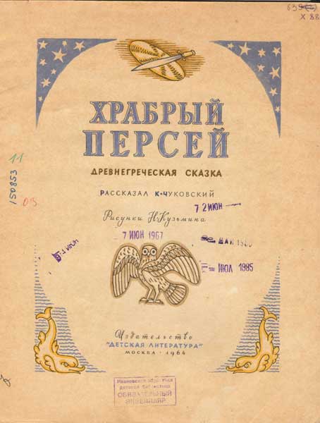 - Храбрый Персей : древнегреческая сказка / рассказал Корней Чуковский ; рис. Н. Кузьмина. – М. : Дет. лит., 1964. – 16 с. : ил.