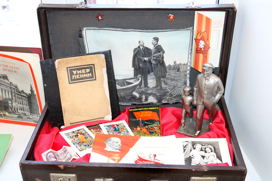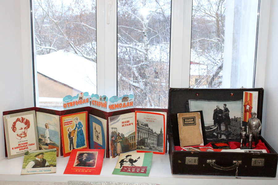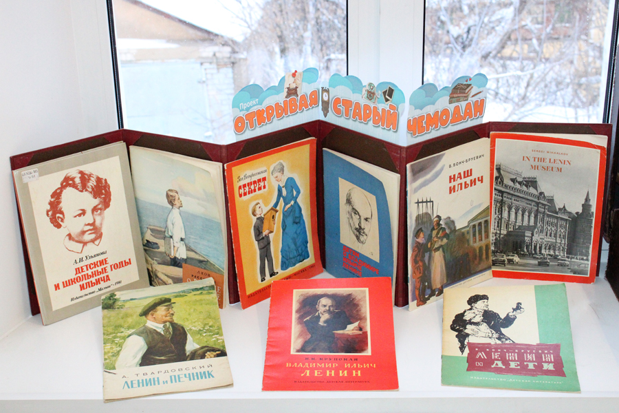 В центре первой выставки «День памяти В.И. Ленина» проекта «Открывая старый чемодан» размещена книга из ретрофонда «Умер Ленин» с датой выпуска на титульном листе 26 января 1924 года.