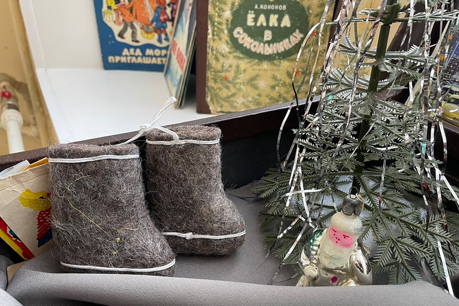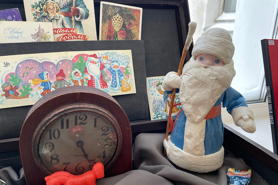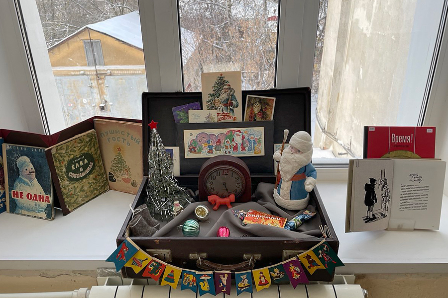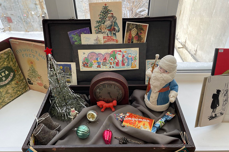 В декабре 2025 года в библиотечном книгохранилище появилась выставка. В старом чемодане и вокруг него уютно расположились новогодние игрушки, атрибуты прошлого и детские книжки, которые пробудили яркие воспоминания и создали теплую атмосферу праздника. Экспозиция привлекла внимание коллег и стала началом выставочного проекта «Открывая старый чемодан».