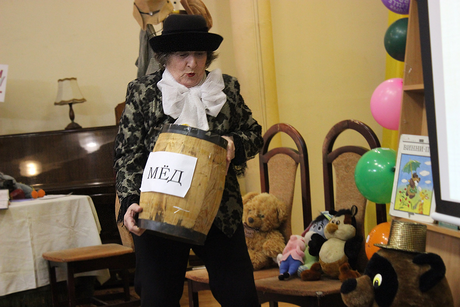 Затем школьники познакомились с британским писателем Аланом Милном – автором истории о плюшевом медвежонке Винни. Они узнали, что его учителем был писатель-фантаст Герберт Уэллс, а сам Милн окончил Кембридж как математик, однако стал журналистом и детским писателем. Также детям рассказали о медведице Виннипег из Лондонского зоопарка, спасённой от браконьеров, и о восьми породах медведей. Вместе с ведущими ребята «прогулялись» по страницам любимой книги в переводе Бориса Заходера, посмотрели мультфильм про медвежонка с голосом Евгения Леонова и с удовольствием подпевали песенкам о тучке, колыбельной Умки и Happy Birthday to You.