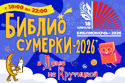 18 апреля 2026 года с 18.00 до 22.00 Ивановская областная библиотека для детей и юношества приглашает всех желающих на акцию «Библиосумерки-2026 в Доме на Крутицкой», чтобы вместе раскрыть страницы культурно-исторического наследия нашей страны. Инициатива реализуется в рамках всероссийского фестиваля чтения «Библионочь-2026».