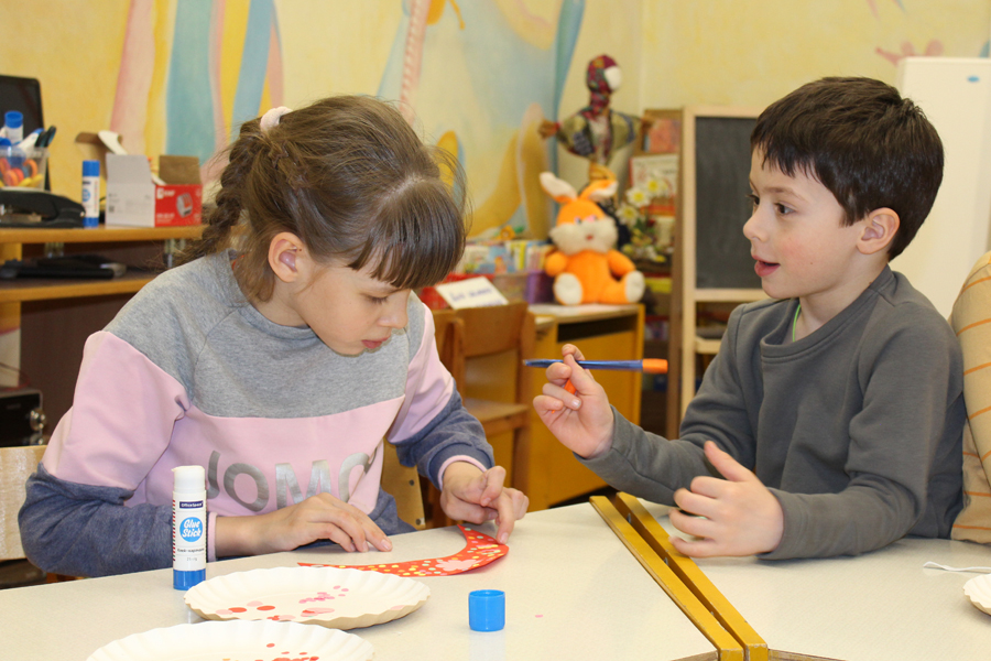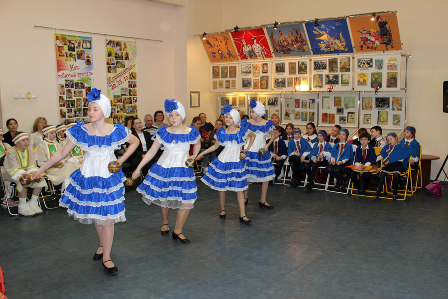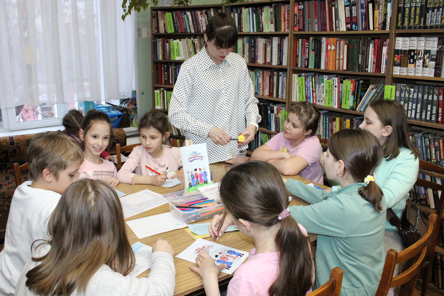 Вместе с ведущим зал принял участие в интерактивной музыкальной игре «Шумовой оркестр», участники которой при помощи детских музыкальных инструментов исполнили народную мелодию «Ах, вы сени, мои сени». Одновременно с концертной программой проводились мастер-классы «Какие разные закладки» (Т.Н. Ашурина) и «Головной убор русской красавицы» (А.Г. Гордеева). Дети с удовольствием делали книжные закладки с аппликациями фигурок, одетых в костюмы разных национальностей России, и мастерили кокошники, которые изготавливали не только девочки, но и мальчики, а затем очень трогательно дарили их своим мамам. Праздник в стране Детства удался на славу!