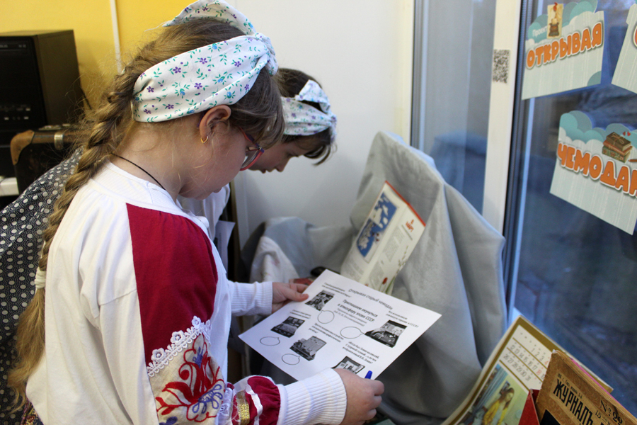 В этот вечер самые потаенные залы библиотеки были доступны для читателей. Так участники квеста «Открывая старый чемодан» посетили не только читальный зал, абонемент, ретрофонд, но и книгохранилище. В экспозициях, размещенных в чемоданах, были подсказки, помогающие ответить на вопросы о самом желанном подарке для советской женщины на 8 марта, о стоимости проезда в ивановском трамвае, о простом механическом устройстве для выполнения арифметических расчетов, о приспособлении для вакуум-терапии в СССР, об изображении с маленьким В.И. Лениным. Отвечая на вопросы, посетители погружались в атмосферу эпохи СССР, расширяли представления о советском периоде через предметы, хранящиеся в ретрофонде библиотеки. В финале игры читателей ждал приз – уникальный читательский билет.