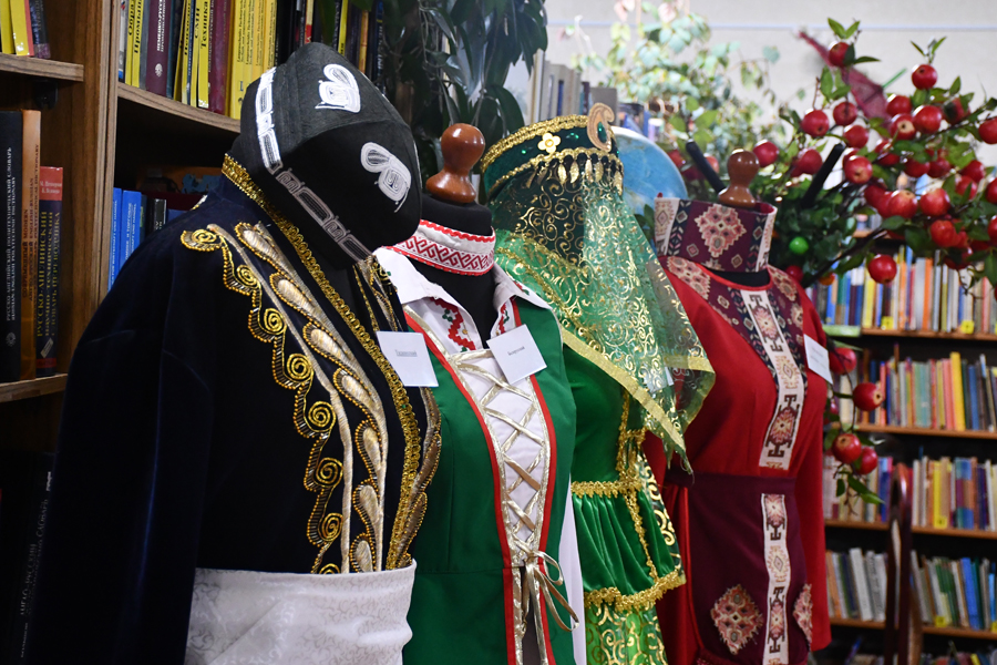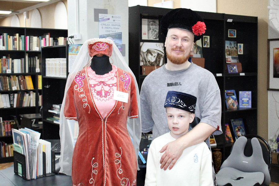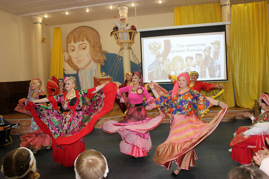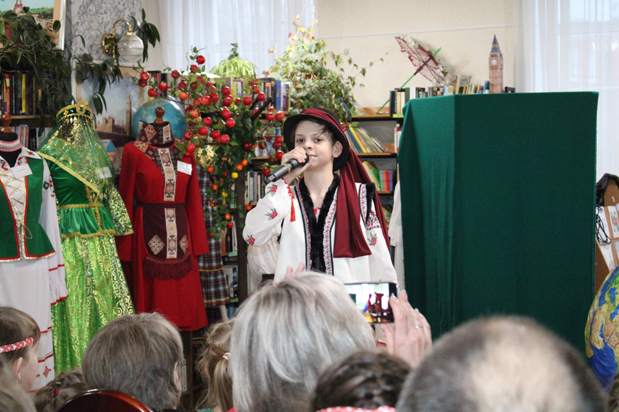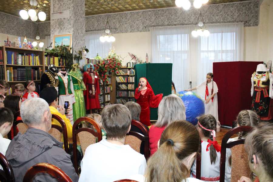 Необыкновенная атмосфера витала на площадке «Народов много – Родина одна!» в зале литературы на иностранных языках. Главным украшением площадки стали чарующие национальные костюмы народов России и конкурсные фотоработы «Дети России». Захватывающий мюзикл «Путешествие по странам» от воспитанников клуба «Акцент» под руководством К.А. Герасимовой и заведующего отделом по работе с национальными объединениями и организационной работе Г.И. Шакировой Ивановского Дома национальностей погрузили гостей библиотеки в увлекательный мир народов и языков России. Зажигательные танцы, красивые костюмы и мелодии затронули душу гостей. Аудитория познакомилась с традициями, песнями, легендами и ощутила единство и многообразие нашей страны.