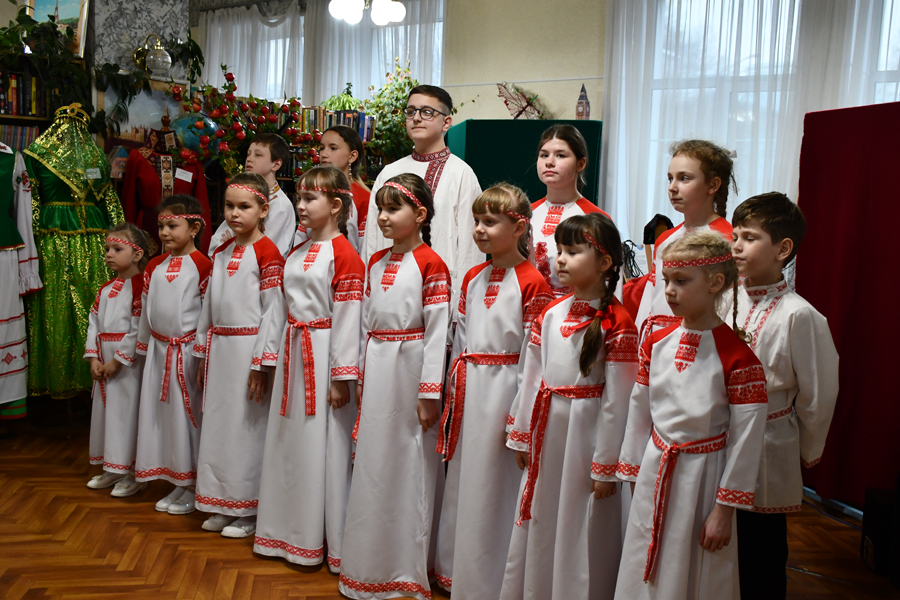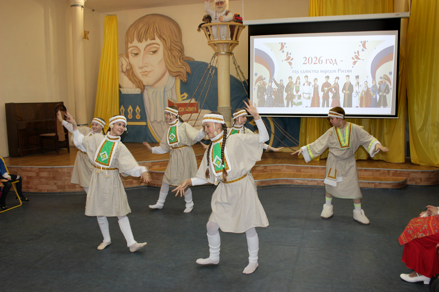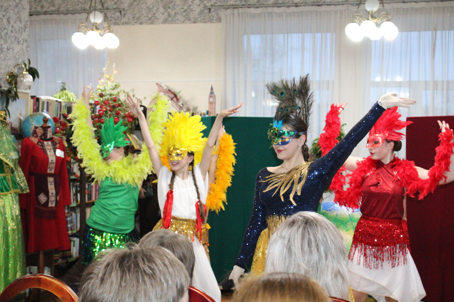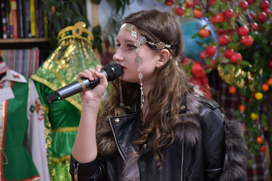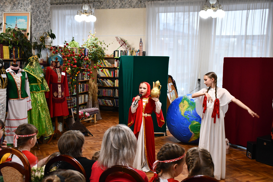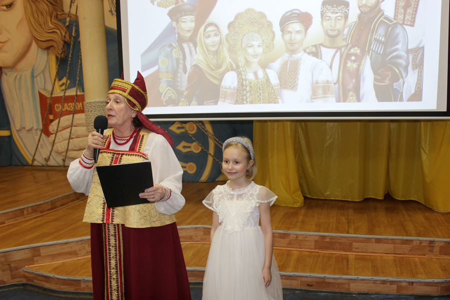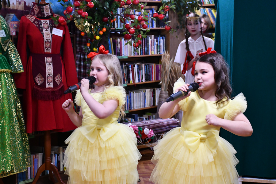 Зрители увидели дефиле национальной одежды, послушали песни о России, Белоруссии, Узбекистане, Дагестане, Армении. Вихрь ярких костюмов захлестнул зал! Гости «Библиосумерек-2026» с интересом посмотрели зажигательные танцы и целые костюмированные композиции: цыганский, калмыцкий, кубинский, народов севера, саамов, эвенков, дагестанский, и русские танцы – с клубочками, «Воронежская разнесуха», «Наливное яблочко», «Молодая канарейка», «Масляничные частушки», «Коляда» и «Иван Купало». Каждый танец и песня рассказали о традициях, обычаях, характерах, уникальности разных национальностей. На сцене блистали и взрослые артисты, и школьники. Особенно всех тронуло эмоциональное исполнение песен о своей родине первоклассницами Катей Оченковой из гимназии N 32 (песня «Матушка-земля») и Арианой Манукян из лицея N 21 (армянская песня «Келе-Келе»). Также прозвучали стихи на русском и татарских языках. В начале праздника прозвучала песня «Я, ты, он, она – вместе целая страна!», а в конце – «Давайте дружить». Отрадно, что зрители с удовольствием подхватывали популярные мелодии.