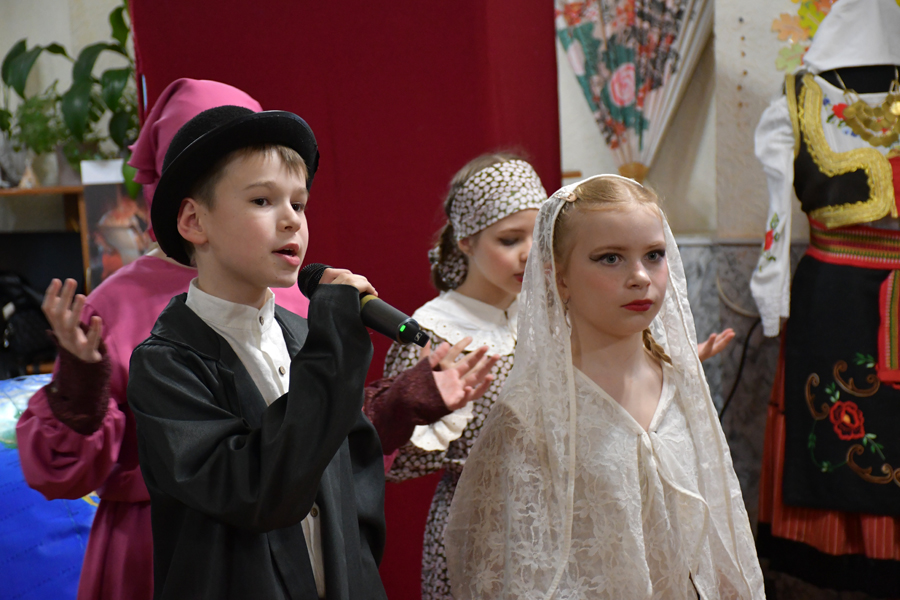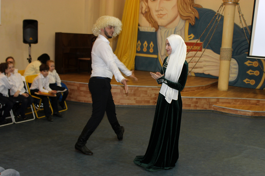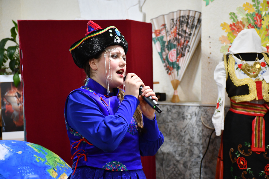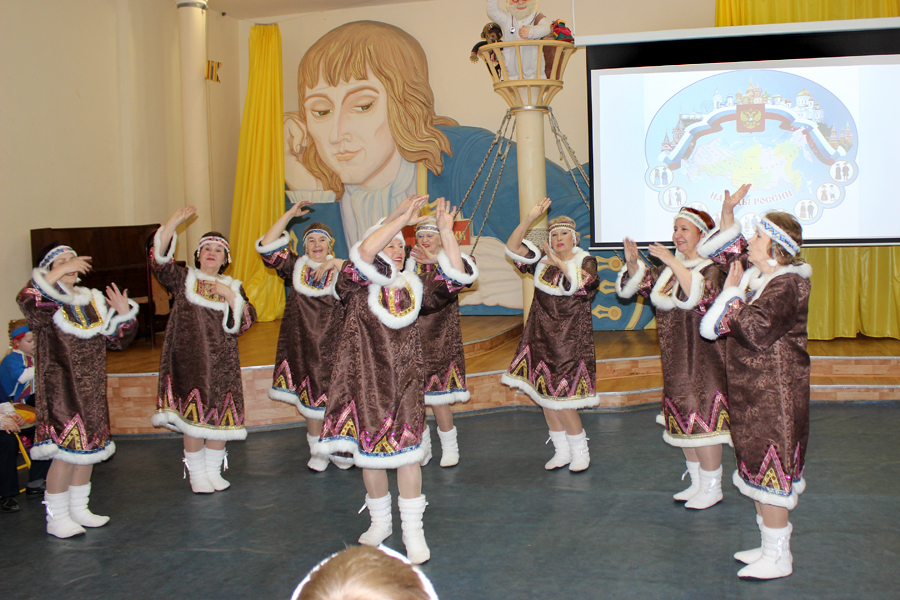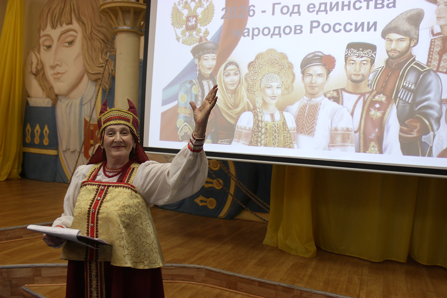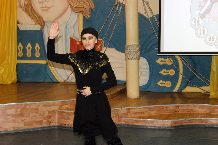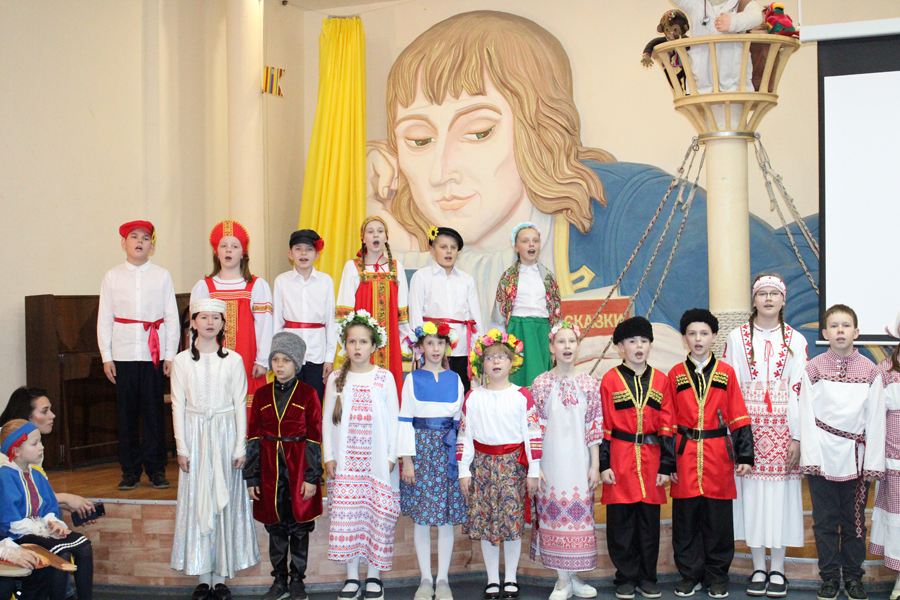 Зрители увидели дефиле национальной одежды, послушали песни о России, Белоруссии, Узбекистане, Дагестане, Армении. Вихрь ярких костюмов захлестнул зал! Гости «Библиосумерек-2026» с интересом посмотрели зажигательные танцы и целые костюмированные композиции: цыганский, калмыцкий, кубинский, народов севера, саамов, эвенков, дагестанский, и русские танцы – с клубочками, «Воронежская разнесуха», «Наливное яблочко», «Молодая канарейка», «Масляничные частушки», «Коляда» и «Иван Купало». Каждый танец и песня рассказали о традициях, обычаях, характерах, уникальности разных национальностей. На сцене блистали и взрослые артисты, и школьники. Особенно всех тронуло эмоциональное исполнение песен о своей родине первоклассницами Катей Оченковой из гимназии N 32 (песня «Матушка-земля») и Арианой Манукян из лицея N 21 (армянская песня «Келе-Келе»). Также прозвучали стихи на русском и татарских языках. В начале праздника прозвучала песня «Я, ты, он, она – вместе целая страна!», а в конце – «Давайте дружить». Отрадно, что зрители с удовольствием подхватывали популярные мелодии.