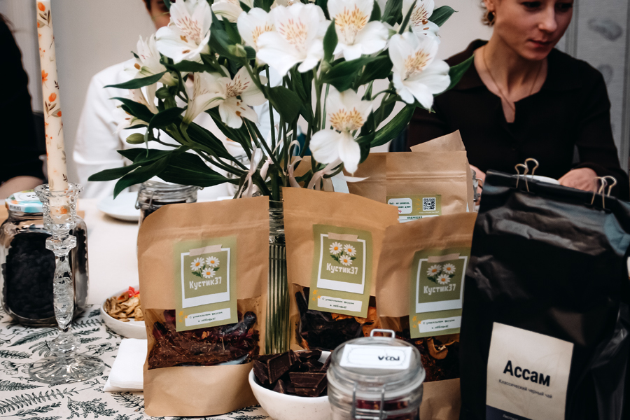 В локации «Главный герой» гостей ждала уютная чайная церемония под руководством мастера – Лейлы Бурченковой. Участники мастер-класса самостоятельно составляли авторские купажи, узнавали о тонкостях ферментации и свойствах трав, а в завершение наслаждались ароматной чашкой чая, созданной своими руками.
