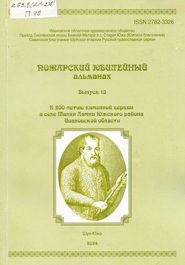 Пожарский юбилейный альманах. Выпуск 13. К 200-летию каменной церкви в селе Малая Ламна Южского района Ивановской области / ред.-сост. А.Е. Лихачев. – Иваново; Южа; Шуя : ПресСто, 2024. – 160 с. : ил.