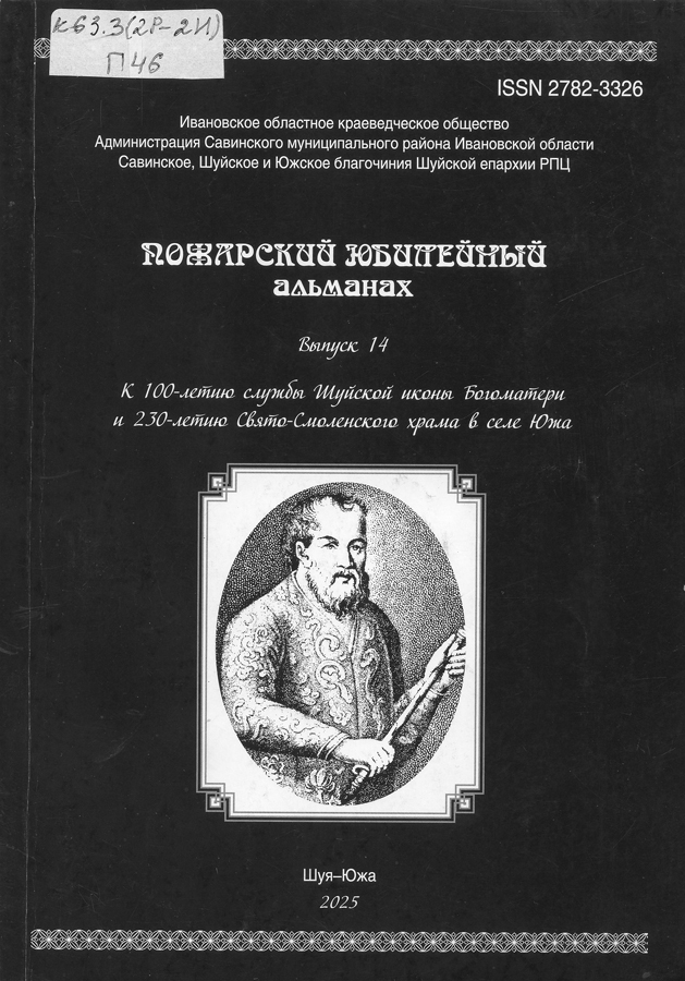 Пожарский юбилейный альманах. Выпуск 14. К 100-летию службы Шуйской иконы Богоматери и 230-летию Свято-Смоленского храма в селе Южа / ред.-сост. А.Е. Лихачев. – Иваново; Южа; Шуя : ПресСто, 2025. – 216 с. : ил.