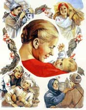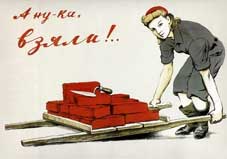 Женщина-труженица, общественница, женщина-спортсменка. Такая могла и на комбайне наравне с мужчинами работать, и доить коров с радостной улыбкой, и легко справляться с отбойным молотком. Она занимается своим образованием, посещает культурные мероприятия. И вместе с тем она успевает быть хорошей женой, заботливой мамой. А в военное время эта женщина встает на защиту своей родины.