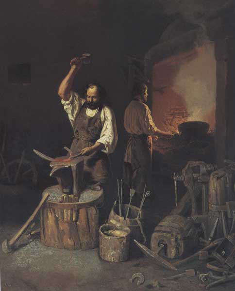 Кузница [Изоматериал] / худож. Л.К. Плахов // Венецианов и его школа. - Л. : Аврора. Ленингр. отделение, 1985. – Ил. 119.