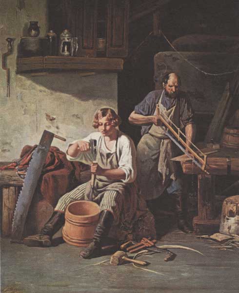 В бондарной мастерской [Изоматериал] / худож. Л.К. Плахов // Русский народ. Будни и праздники: энциклопедия / Изабелла Иосифовна Шангина. - СПб. : Азбука-классика, 2003. – С. 401.