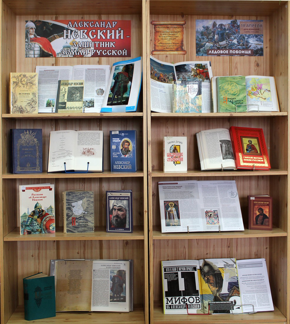 18 апреля 2026 года в Зале культурно-досуговых программ отдела «Отрочество. Юность» начала работу книжная выставка «Александр Невский – защитник земли Русской». Экспозиция приурочена ко Дню победы русских воинов над немецкими рыцарями на Чудском озере (Ледовое побоище, 1242 год) и 805-летию со дня рождения князя. Выставка раскрывает многогранность образа Александра Невского: как полководца, дипломата, государственного деятеля и святого.