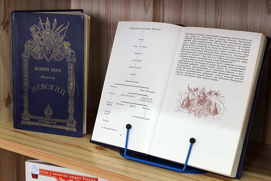 Также на выставке представлены материалы в помощь для школьников и педагогов. Так, например, учебник для 5 класса «Рассказы по родной истории» Н.И. Ворожейкиной, В.М. Соловьева и М.Т. Студеникина включает информацию о ключевых событиях эпохи, иллюстрации и вопросы для закрепления материала. В подготовке урока учителям поможет статья О. Лашковой «Князь Александр Невский: герой средневековой Руси».