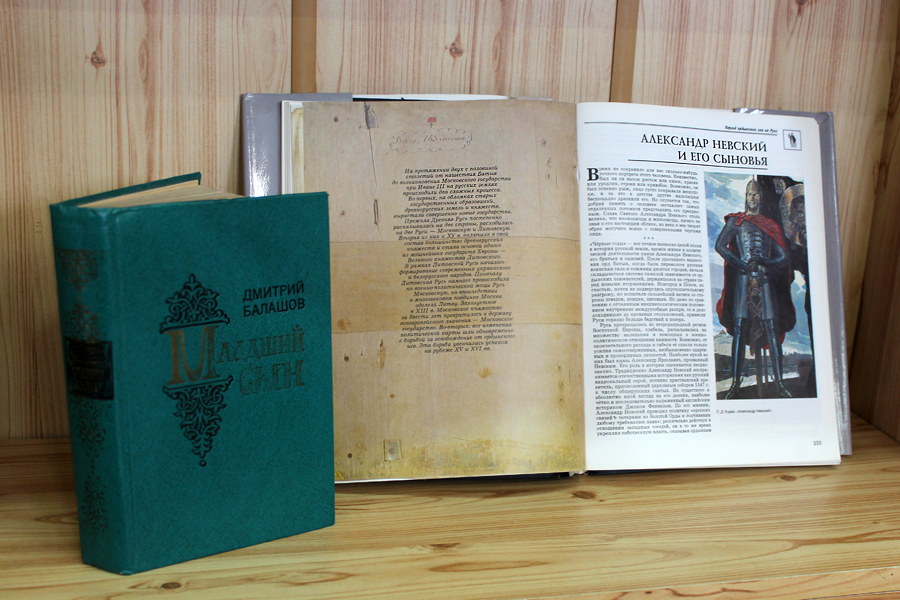 Дополняют раздел произведения художественной литературы: сборник «Рассказы об Александре Невском» О.Н. Тихомирова из серии «Детям о великих людях России», историко‑приключенческая повесть «Путём Александра Невского» Г.Н. Караева и А.С. Потресова, где путешествие школьников по древнему маршруту князя становится способом прикоснуться к прошлому. Также представлены книги о семье князя. Например, исторический роман «Младший сын» Д.М. Балашова рассказывает о первом московском князе Данииле Александровиче – младшем сыне Александра Невского. Книга представляет собой хроникальное художественное описание событий, происходивших в Залесской Руси: от раздробленности и зависимости к постепенному зарождению нового центра силы – Москвы.