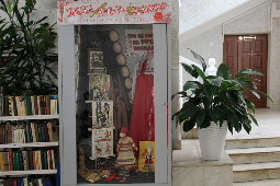 В холле первого этажа библиотеки начала работу вторая выставка проекта «Прялка, рубель, самовар – с ними в сказку ты попал».