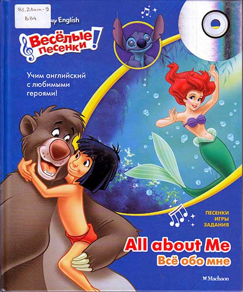 - Все обо мне = All about Me : песенки, игры, задания : учим английский с любимыми героями : [для среднего школьного возраста] / пер. с англ. И. Цибизова. – М. : Махаон, 2013. – 53 с. : ил. + 1 CD. – (Disney English).