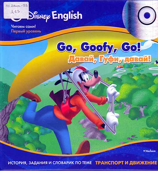 - Давай, Гуфи, давай! = Go, Goofy, Go! : история, задания и словарик по теме «Транспорт и движение» : [для младшего школьного возраста] / пересказ С. Проктер ; пер. с англ. В. Левин. – М. : Махаон, 2013. – 35 с. : ил. + 1 CD. – (Disney English).