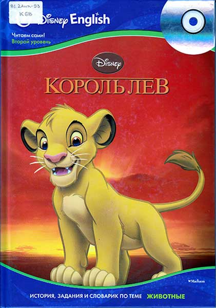 - Король Лев : история, задания и словарик по теме «Животные» : [для среднего школьного возраста] / пересказ Р. Хаммел ; пер. с англ. В. Левин. – М. : Махаон, 2013. – 44 с. : ил. + 1 CD. – (Disney English).