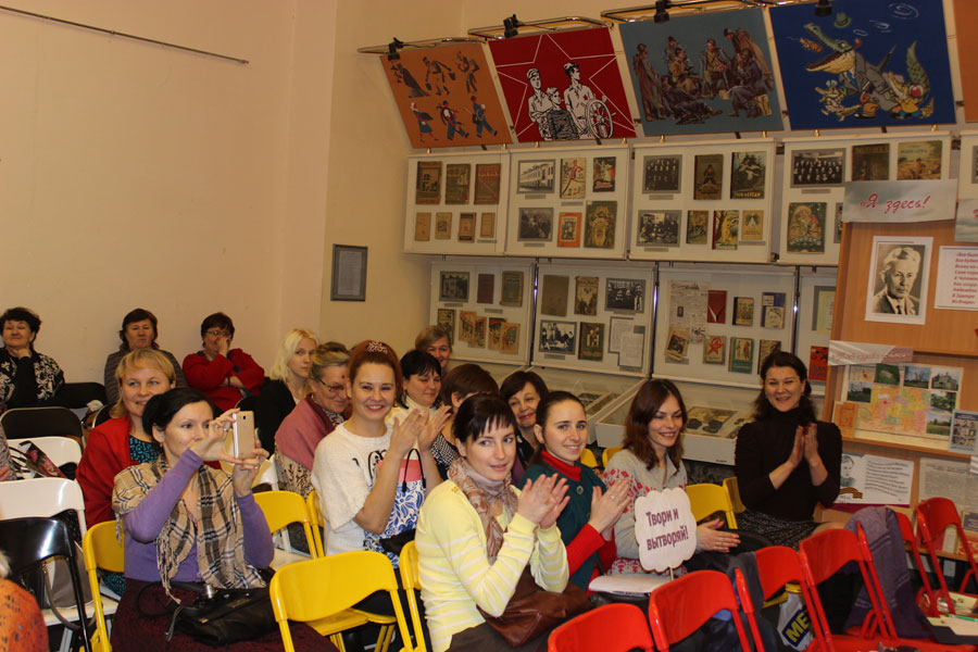 В день проведения «Ярмарки библиотечной работы» в зале музея были и волнующиеся конкурсанты вместе с группами поддержки, которые приехали чтобы поболеть за своих коллег, и сотрудники библиотек, которые пока не делегировали на конкурс своих представителей. Участниками конкурса стали три библиотечных специалиста Централизованной библиотечной системы города Вичуги, библиотекари Публичной библиотеки Родниковской районной ЦБС и Городской библиотеки г. Комсомольска. К сожалению, на очный этап не приехала наша коллега из Приволжской центральной городской библиотеки, которая прислала на заочный этап очень достойный материал и могла бы побороться за звание победителя конкурса.