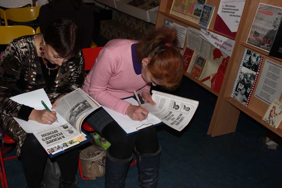 В интеллектуальном туре предстояло узнать – действительно ли «знает все библиотекарь»? Конкурсанты получили письменные задания и в течении определенного времени старательно трудились, отвечали на вопросы. Организаторы предложили участницам обратиться к классической и современной литературе, вспомнить фольклор, показать профессиональные знания по библиотековедению и библиографии. Отметим, что некоторые задания были неоднозначны и заставляли подумать, применить логическое мышление, а иногда – просто отгадать.