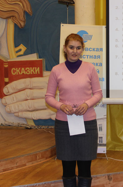Народная мудрость гласит: «Кто говорит, тот сеет; кто слушает – собирает» и для того, кто «собирает» важен тон, громкость и темп речи. Следующий тур «Ярмарки библиотечной работы» назывался «Риторика» – как известно, этот термин обозначает искусство речи, ораторское мастерство, красноречие. Конкурсанты получили возможность проявить свои способности в нестареющей форме библиотечной массовой работы – громком чтении. Надо сказать, что такое задание уже получали участники предыдущих конкурсов «Детский библиотекарь года», но в этом году организаторы подготовили к прочтению отрывки из басен и четверостишия. Жюри оценивало выразительность и эмоциональность чтения, четкость и громкость, правильность расстановки ударений и т.п. Участницы мастерски показывали свое настроение и отношение к тексту, стремились читать точно, без ошибок и оговорок. Наши коллеги старались передать идею автора басни и характеры стихотворных персонажей. Басни были прочитаны поучительно, а стихи – очень эмоционально, значит библиотекари часто применяют эту форму работы и владеют ею в совершенстве.