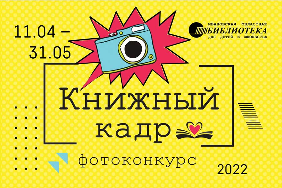 11 апреля 2022 года Ивановская областная библиотека для детей и юношества дала старт фотоконкурсу «Книжный кадр». Мероприятие адресовано работникам областных, муниципальных общедоступных библиотек, а также библиотекам учебных заведений Ивановского региона. Конкурс направлен на продвижение книги и чтения среди детей и юношества, популяризацию библиотечного фонда, раскрытие творческого потенциала библиотекарей.