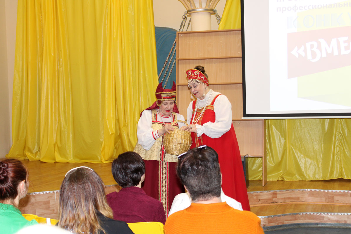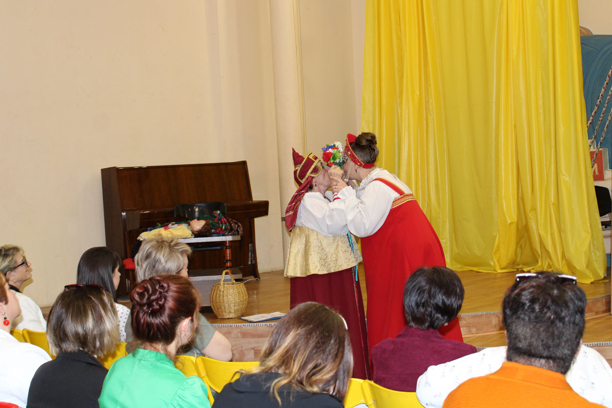 Яркие эмоции подарил аудитории театр книги «Корнаватка» ИОБДЮ, музыкальные и театральные номера которого перемежались с защитой конкурсных проектов. Библиотечные актеры в русских народных костюмах представили ассорти из цикла фольклорных спектаклей «Русская семья во все времена года».