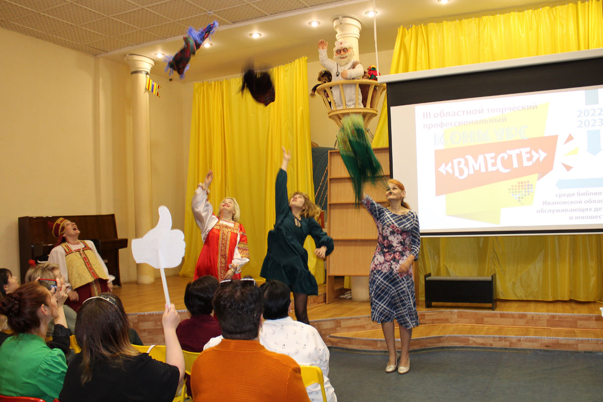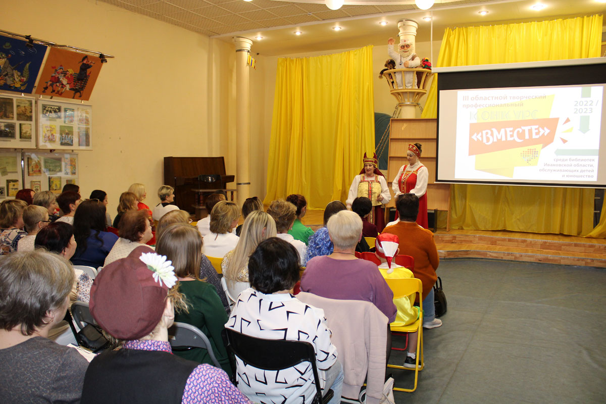 18 мая 2023 года в Ивановской областной библиотеке для детей и юношества состоялся очный этап III областного творческого профессионального конкурса «Вместе». Участники из разных уголков нашего края приехали, чтобы побороться за звание лучшей библиотечной команды Ивановской области, работающей с детьми и юношеством.