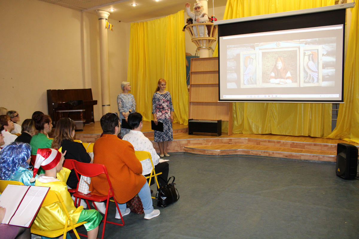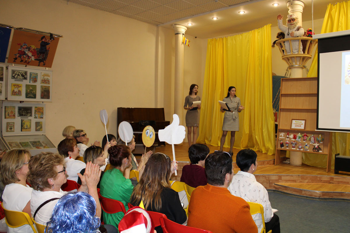 Команда «СуперСтар» рассказала о проекте «Золотая россыпь народного фольклора» и поделилась библиотечными премудростями. Коллеги из вичугской ЦБС представили реализованный спектр мероприятий и удивили зал визитной карточкой, органично сочетающей советский мультфильм «Вовка в Тридевятом царстве» с рассказом о своей дружной команде.