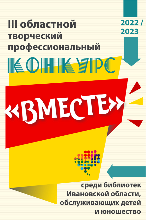 Уважаемые коллеги! Ивановская областная библиотека для детей и юношества приглашает к участию в III областном творческом профессиональном конкурсе «Вместе» среди библиотек Ивановской области, обслуживающих детей и юношество. Профессиональное мероприятие проводится при поддержке Департамента культуры и туризма Ивановской области.
