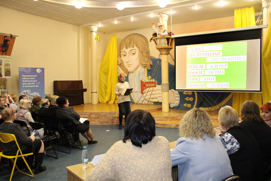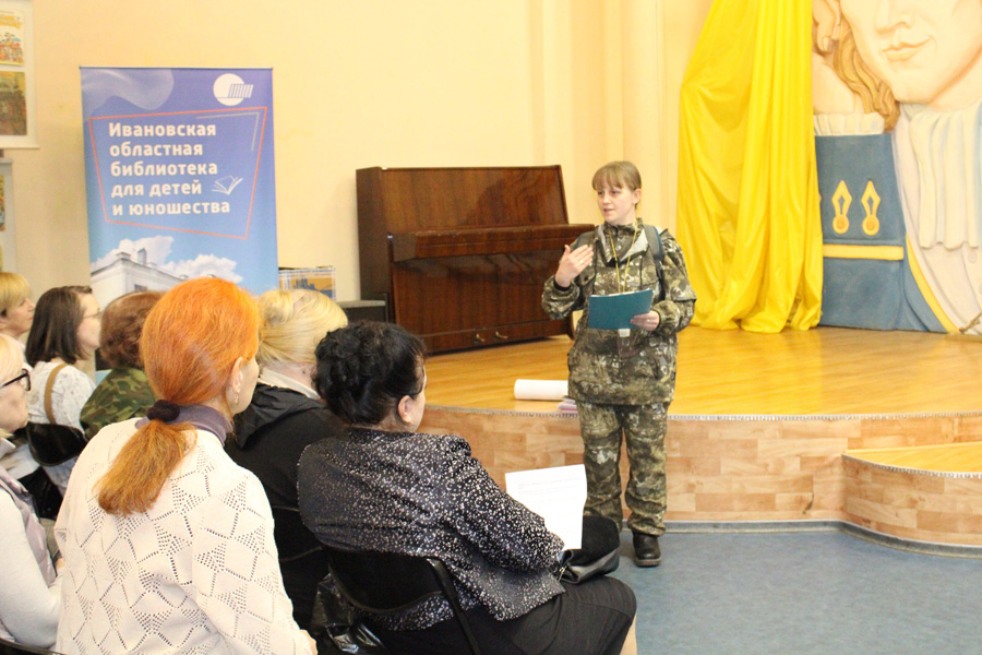 Очный этап конкурса прошел в формате фестиваля идей: коллеги представляли оригинальные формы работы из сценария заочного тура, «изюминку» своей разработки. Команда «Искатели» Верхнеландеховской библиотеки предложила игру о природе Ивановской области «Ты мира не знаешь, не зная края своего». Рассказав о разнообразии животного и растительного мира, команда подчеркнула важность бережного отношения к окружающей природе. Для проведения игры коллеги разработали карту-бродилку «Красная книга Ивановской области» и тематические карточки. Бросая кубик, игроки передвигаются по маршруту и выполняют задания. За время игры участники совершают путешествие по 12 станциям Красной книги, знакомятся с её представителями – редкими и исчезающими видами, учатся понимать важность охраны природы.