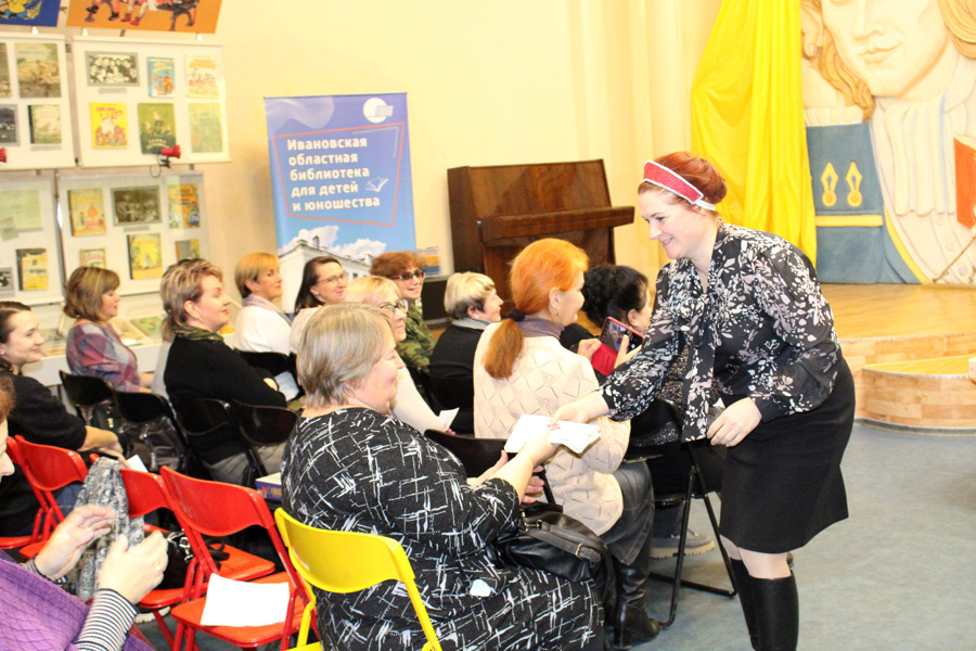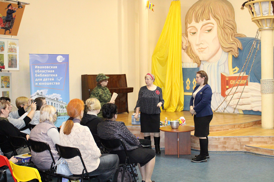 «Приволжанки» – команда Центральной библиотеки г. Приволжка погрузила аудиторию в историю города через творчество местных поэтов. Продолжилась презентация патриотической игрой «Наша страна – Россия». В основе разработки – формат телепередачи «Своя игра», в которой вопросы распределены по темам и уровню сложности. Представляя свою «изюминку», команда активно взаимодействовала с аудиторией. В категориях «Символы России», «Заповедные места», «По земле Ивановской», «Искусство» участники отвечали на вопросы. Например, «Чем больше проявляешь к ней интерес, тем мельче она оказывается» (Матрешка), «Крупнейшая река России, воспетая в стихах и песнях. В честь нее названы города и даже марка машины» (Волга), «Этот поселок в Ивановской области известен во всём мире производством Лаковой миниатюры» (Палех), «Русский композитор, который написал музыку к самому «зубастому» балету» (П.И. Чайковский) и другие. Уверены, что юные читатели с интересом принимают участие в игре и тем самым больше узнают о своей стране.