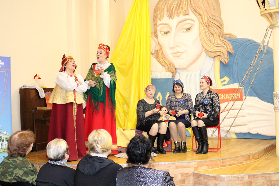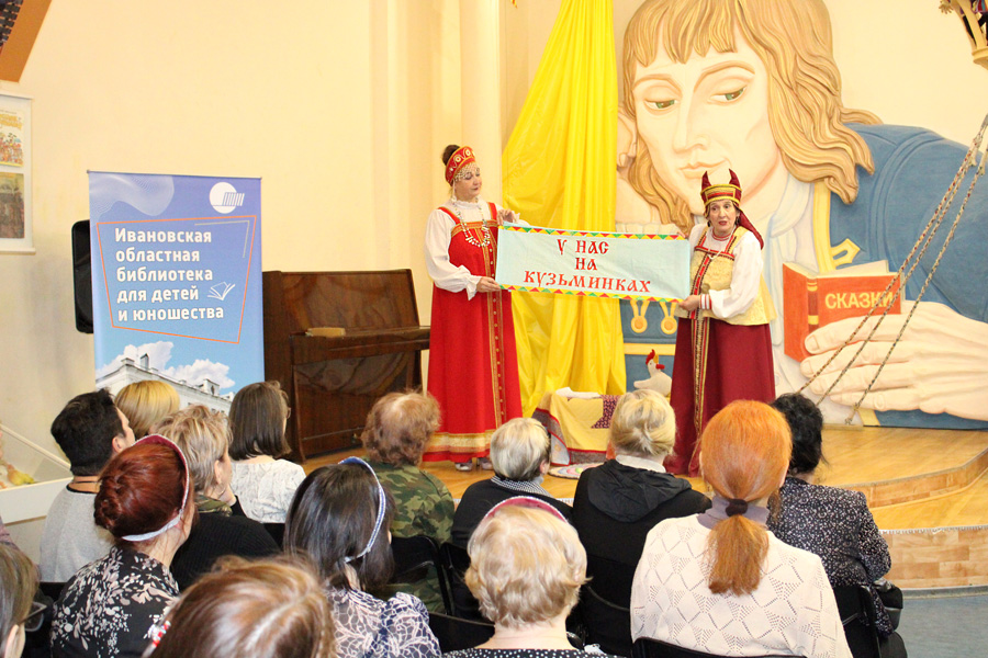 Подарком участникам конкурса стало выступление просветительского театра книги «Корноватка». Библиотечные актеры порадовали зрителей фольклорной постановкой «У нас на Кузьминках» из авторского цикла «Русская семья во все времена». Мудрая баба Арина (О.Л. Шишкина) и ее любознательная внучка Катерина (И.А. Смирнова) показали, как жила русская семья в будни и праздники, какие посиделки устраивали после уборки урожая, познакомили с интересными старинными обрядами и играми.