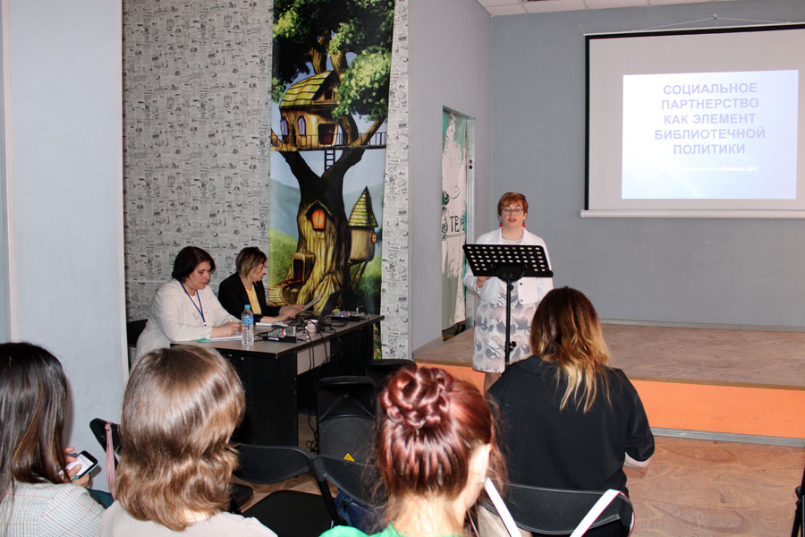 Открылось мероприятие консультацией ведущего методиста ИОБДЮ Н.В. Смирновой «Библиотека – территория сотрудничества». Она отметила, что на сегодняшний день социальное партнерство является актуальным направлением совершенствования библиотечного обслуживания, которое позволяет решать ряд важных задач: вести активную деятельность по продвижению книги и чтения в обществе, получить помощь в осуществлении библиотечной работы от компетентных специалистов, повысить уровень материально-технического и финансового обеспечения, создать положительный имидж библиотеки. В своем выступлении Наталия Вадимовна рассказала о видах социального партнерства библиотек, взаимодействии читален с органами власти, образовательными организациями, учреждениями культуры, СМИ, религиозными, общественными организациями и ассоциациями, привела примеры подобного сотрудничества, опираясь на опыт работы коллег из российских библиотек. Особое место в сообщении было уделено формам взаимодействия организаций в рамках партнерских отношений: сотрудничеству на основе договорных отношений, волонтерству, меценатству и спонсорству. Методист обратила внимание коллег на необходимость оформления соглашений (договоров) о социальном партнерстве, рассказала о структуре и содержании документа.