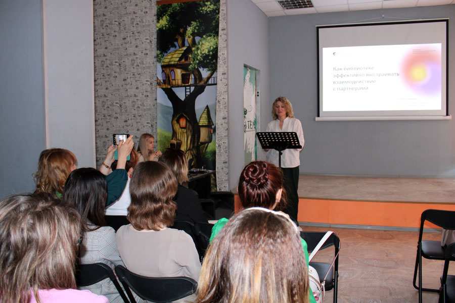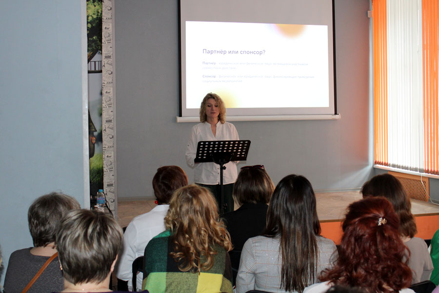 В своем сообщении «Как библиотеке эффективно выстраивать взаимодействие с партнерами» заведующий отделом поддержки творческих инициатив ИОБДЮ Елена Вячеславовна Голубева рассказала об этапах работы специалистов библиотеки со спонсорами. Она отметила, что при выборе партнеров необходимо руководствоваться рядом критериев: доступность в общении, совпадение целей и интересов, взаимовыгодность сотрудничества. На первом подготовительном этапе создаётся банк данных о реальных и возможных партнёрах, их интересах, возможностях. Далее проводится анализ: что можно получить от потенциальных коллег, и что библиотека может предложить взамен, устанавливается контактное лицо, направляется предложение о сотрудничестве. Елена Вячеславовна подчеркнула, что спонсорство должно быть взаимовыгодным, а значит, предложение необходимо сделать максимально привлекательным для потенциального партнера. Библиотека может предоставить спонсору возможность разместить на мероприятии рекламные плакаты, раздавать листовки, визитки. Коллега призвала участников семинара не стесняться обращаться за помощью, так как бизнес через сотрудничество с библиотекой решает свои задачи: маркетинговые, репутационные и социальные.