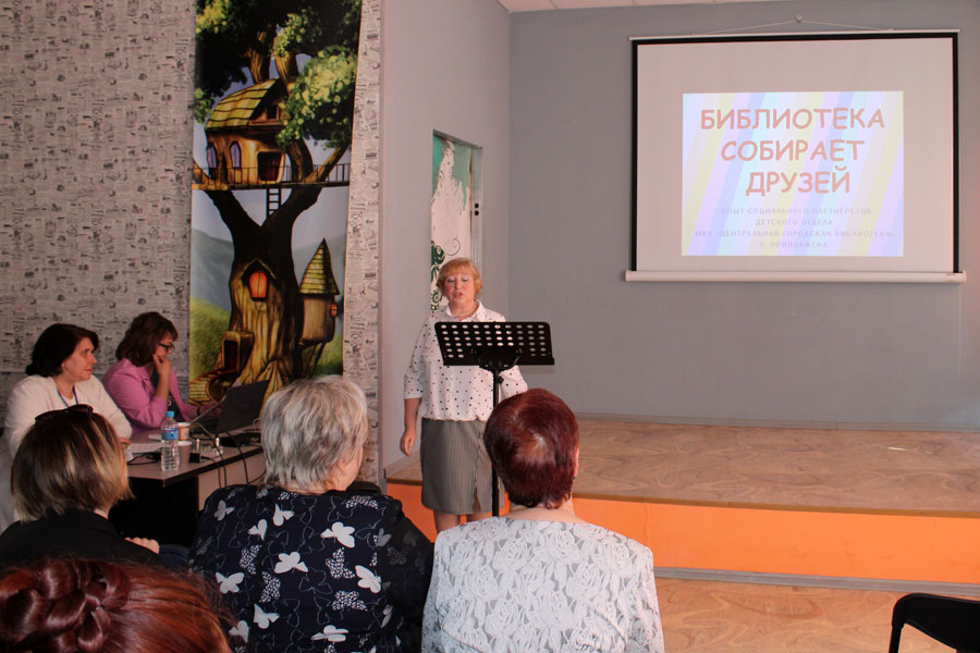Большой интерес у присутствующих вызвало выступление заведующего детским отделом МКУ «Центральная городская библиотека» Приволжского городского поселения Натальи Александровны Комаровой «Библиотека собирает друзей: опыт социального партнерства детского отдела Приволжской городской библиотеки». Коллега подробно остановилась на сотрудничестве с образовательными учреждениями Приволжска.