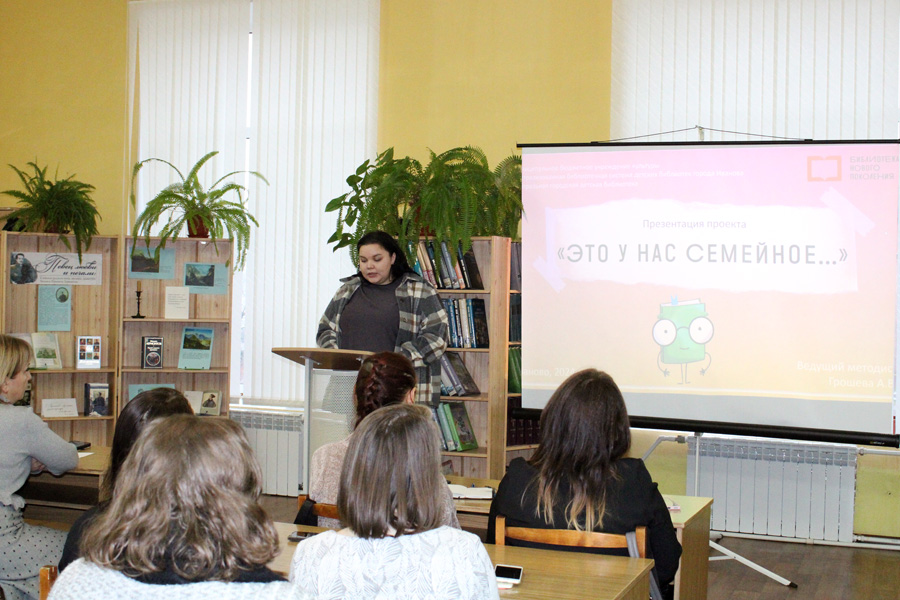 «Это у нас семейное…» – название проекта Детской библиотеки МБУК Централизованная библиотечная система детских библиотек города Иванова. Ведущий методист ЦБС Анастасия Викторовна Грошева в своем сообщении познакомила собравшихся с циклом мероприятий для читателей, объединенных в Год семьи в масштабный проект. Инициатива коллег «Нескучный выходной в библиотеке» предлагает юным гостям библиотеки принять участие в интеллектуальных играх, викторинах, мастер-классах, в проведении которых помощь оказывают родители ребят. Частью проекта являются занятия семейного клуба «Пятнашки», конкурсы «Самая читающая семья», выставка семейных творческих работ, командная семейная игра.