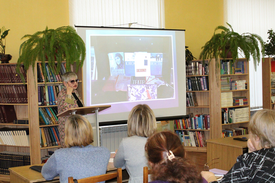 Коллега познакомила собравшихся с двумя проектами, которые были реализованы в библиотеке в последние годы. С 2020 года реализуется выставочный проект «Когда бабушка и дедушка были маленькими», знакомящий с жизнью людей в нашей стране в XX веке. В экспозиции кроме книг из ретрофонда были представлены предметы быта того или иного периода жизни нашей страны. Юные читатели библиотеки узнали о том, как жили их бабушки и дедушки, какими игрушками играли, какие книги читали.